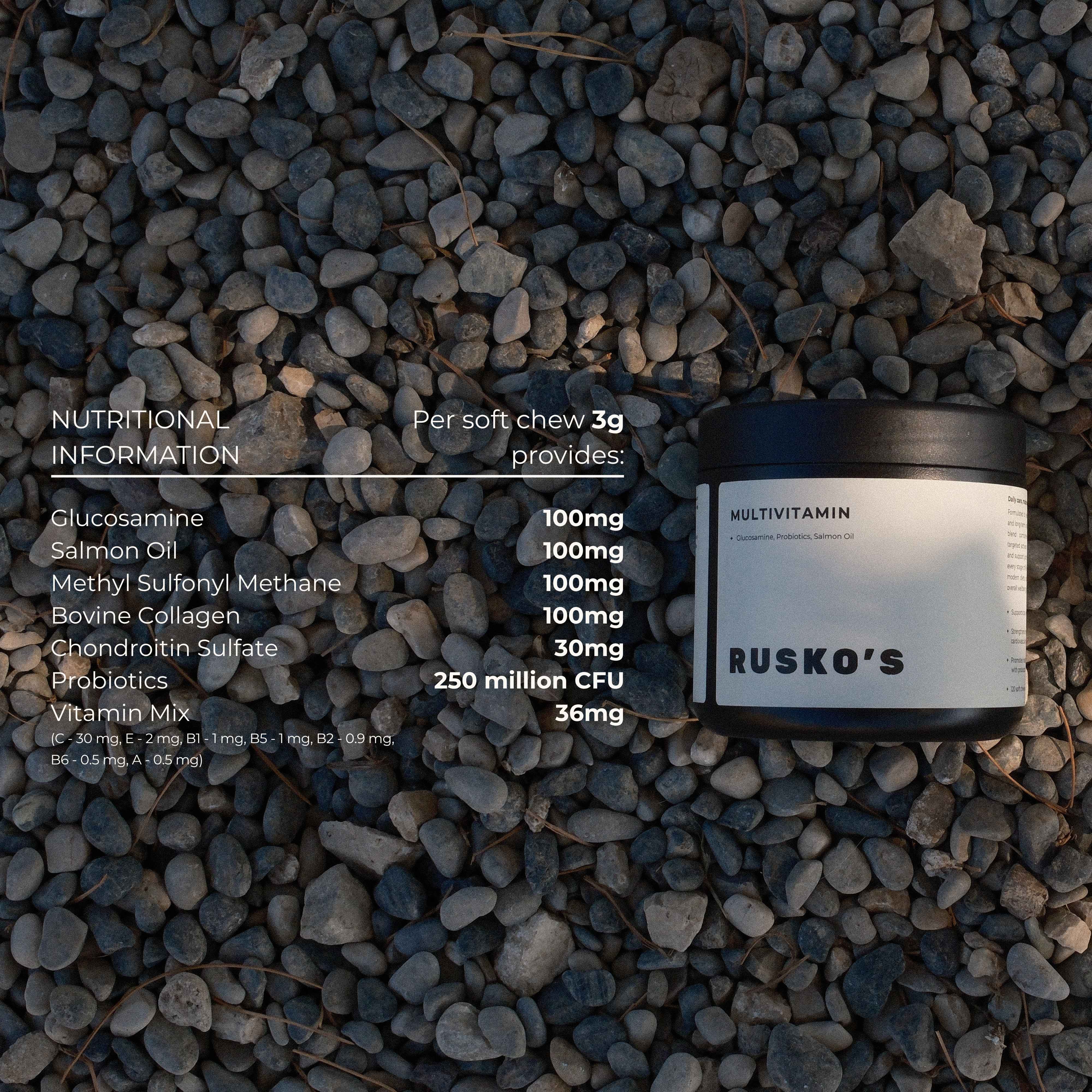 Formulated to deliver daily support for health, energy and long-term vitality. This comprehensive multivitamin blend combines essential vitamins, minerals and targeted actives to strengthen immunity, aid digestion and support joint function - helping your dog thrive at every stage of life. It’s designed to fill nutritional gaps in modern diets, optimise internal balance and promote overall wellbeing from the inside out.