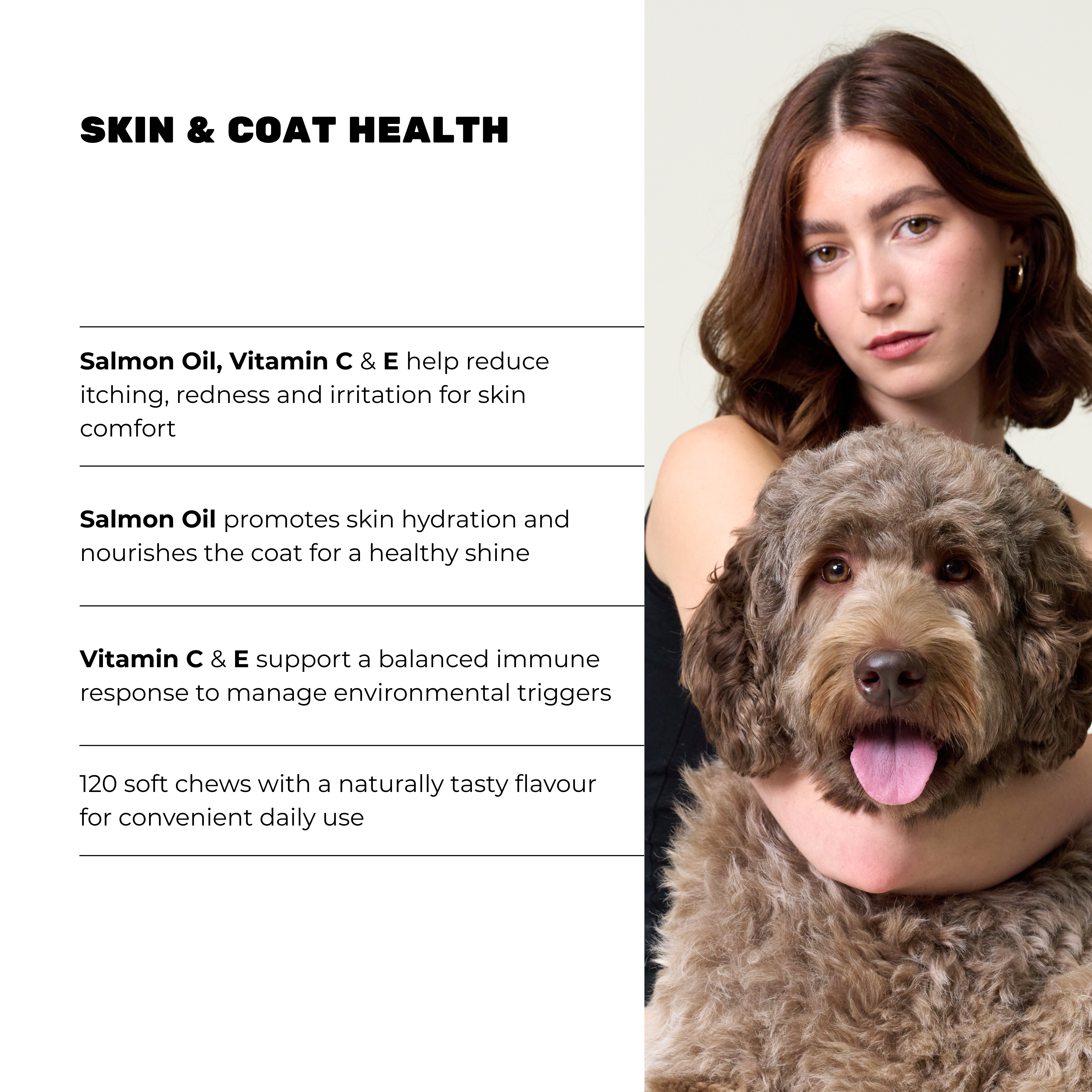 Designed to support dogs affected by seasonal allergies, dryness and environmental stress - promoting long-term skin comfort and coat clarity.