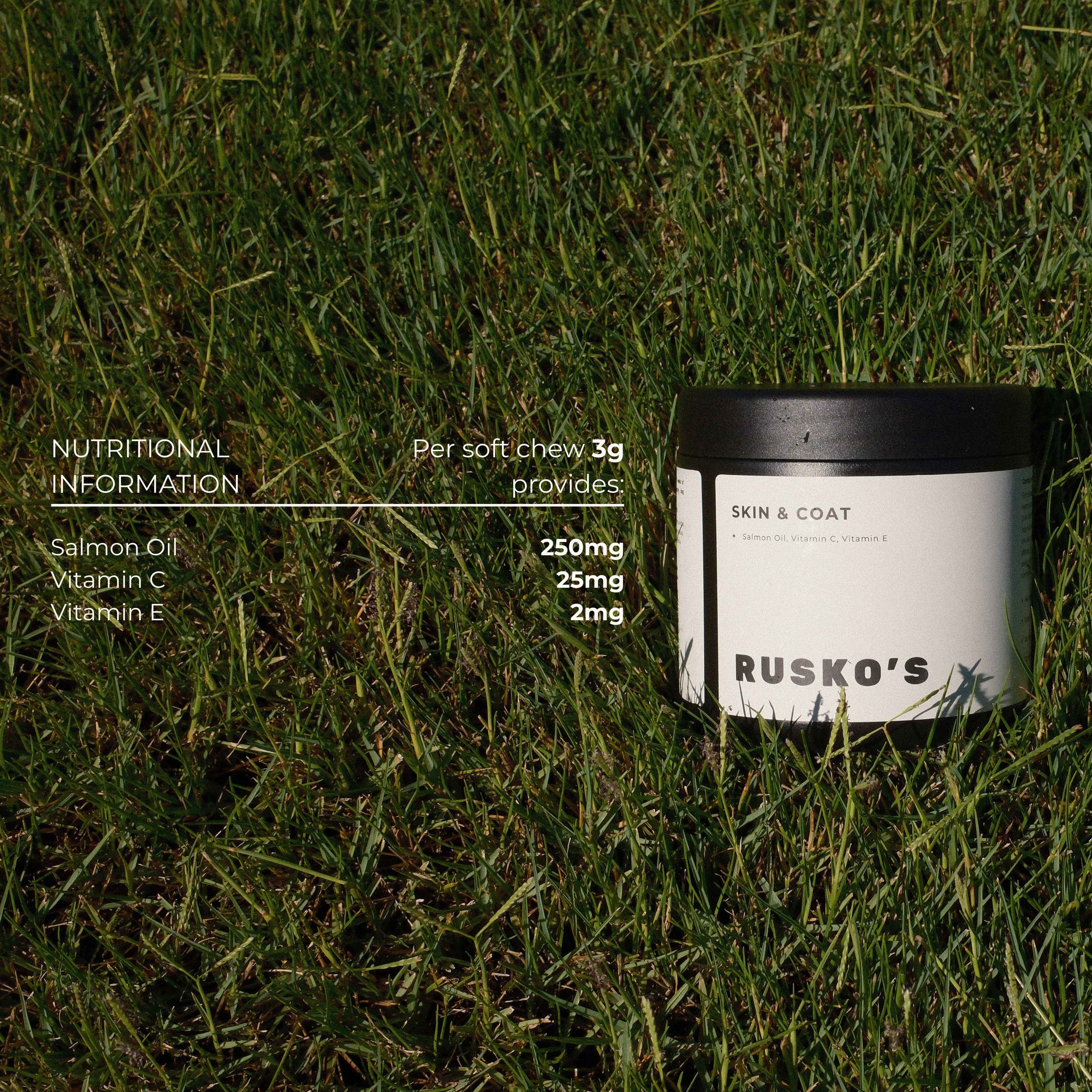 Formulated to soothe irritated skin and support a visibly healthier coat. This daily supplement combines Omega-3-rich Salmon Oil with antioxidants Vitamin C and E to help reduce itchiness, calm inflammation and reinforce the skin’s natural barrier.